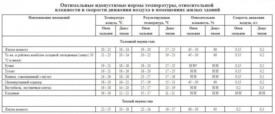 В межквартирных коридорах, а также в вестибюлях температура составляет 16-22° С. В прихожих, жилых комнатах и кухнях с газовыми или электрическими плитами температура составляет 18-25° C. Эти помещения предназначены для постоянного проживания (то есть более 4 часов). Самая высокая температура 24° C – действует для расчетов в ванной комнате. Также норма регламентируется Санитарными правилами и СанПиН.
