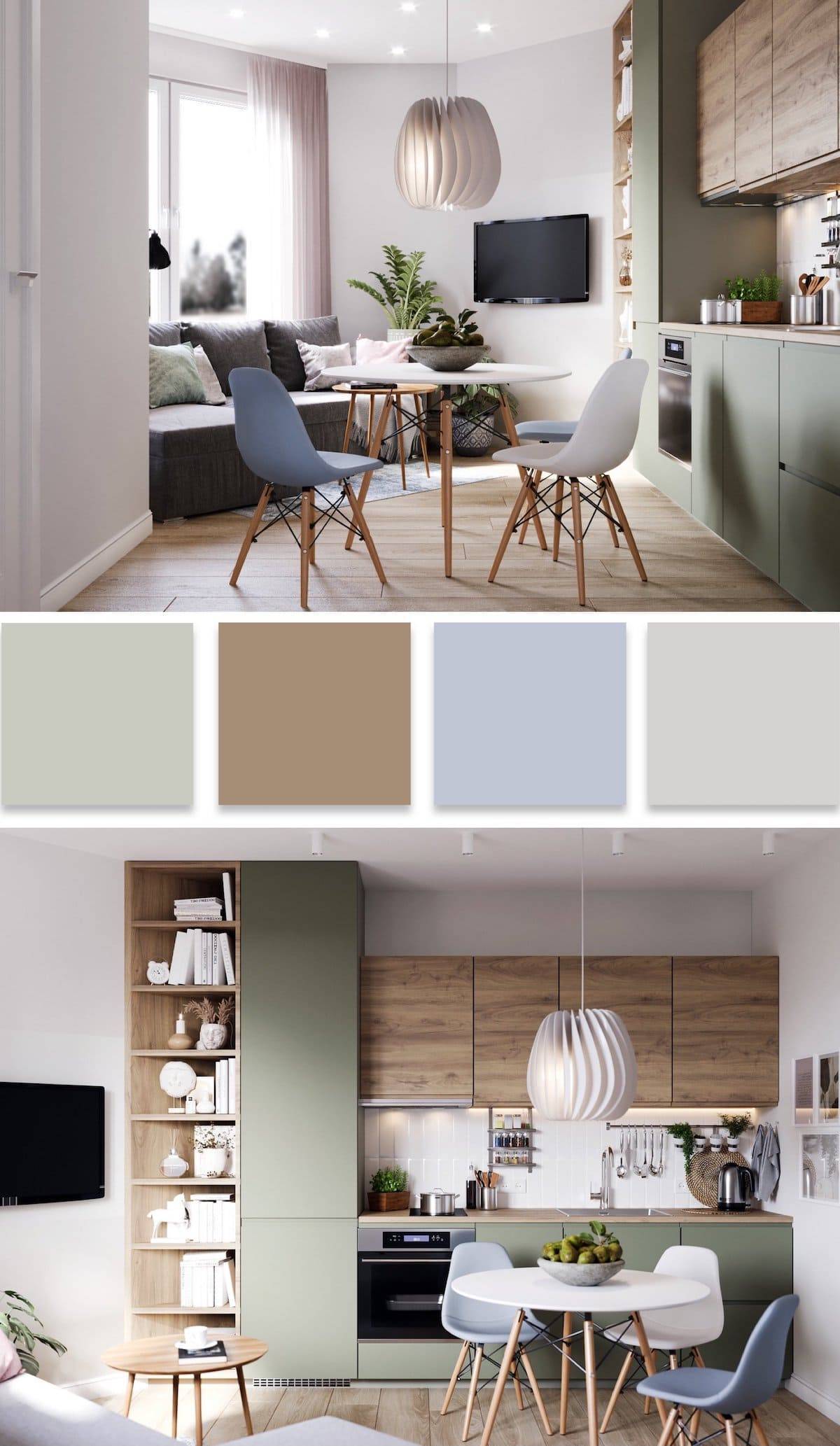 Грамотно решенное визуальное разделение пространства на функциональные зоны относится к главным трендам сезона 2021. Применяя комбинацию хорошо сочетающихся оттенков, можно выделить в комнате рабочую, каминную зону, уголок отдыха, место для детских занятий или размещения цветущих растений. На кухне несложно визуально разделить столовую и рабочую зону.