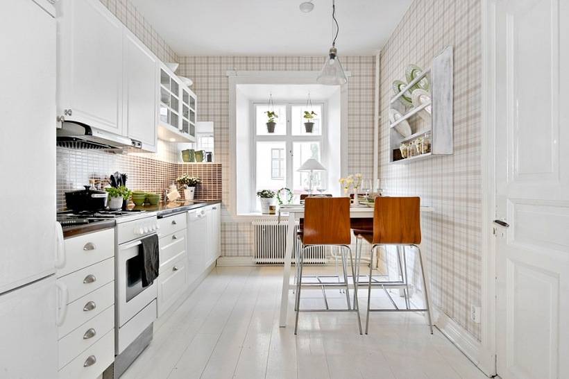 Правильно подобрав настенные украшения, можно оптически увеличить или уменьшить интерьер. Так какие обои для маленькой кухни будут лучшими? В первую очередь, светлых, пастельных тонов и сдержанных в дизайне.