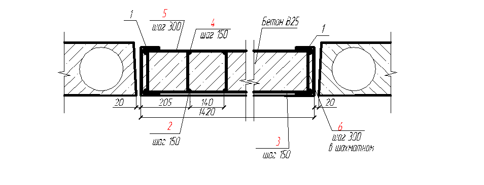 - Арматура нижней сетки выпускается наружу через специальные пропилы в щите перемычки, образовавшиеся щели запениваются.