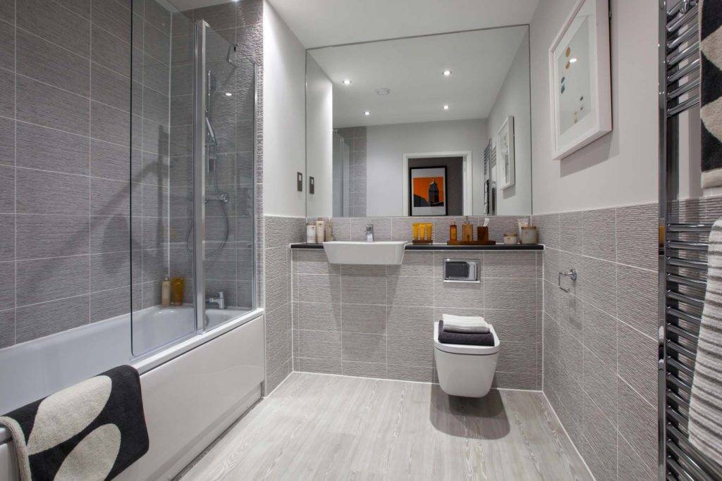 Размер должен соответствовать размеру вашей ванной комнаты. Большая плитка для ванной всегда смотрится круто на большом стенде, но представляйте её именно в контексте размеров вашего санузла. Если на всю длину стены ляжет меньше 3 штук, то стоит присмотреться к вариантам меньше. Стандарт 2+ плитки на одну стену. Учитывая размер наших типовых квартир, разгуляться получится только в совмещенной с туалетом ванной.