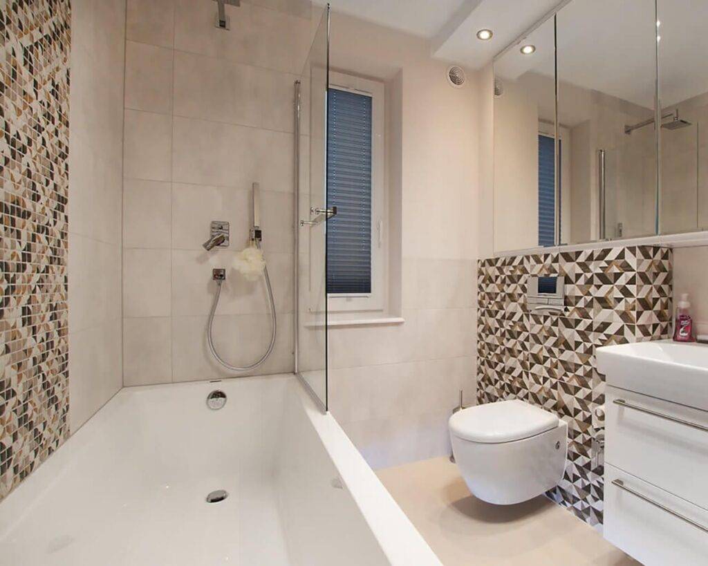 Размер плитки — имеет решающее значение для окончательной отделки. От небольших кубиков, идеально подходящих для отделки овальной ванны, стандартных квадратных и прямоугольных плиток размером от 10 см до 40-50 см, до больших форматов, превышающих 1 м. Маленькие плитки означают много стыков, они очень чувствительны к загрязнениям и требуют много времени на очистку.