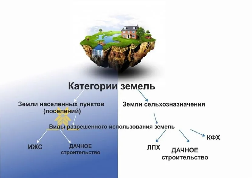 Вид разрешенного использования земельного участка – своеобразная подкатегория, которая предписывает возможное использование участка его собственником или арендатором. К основным видам разрешенного использования земельных участков относятся: индивидуальное жилищное строительство (ИЖС), ведение личного подсобного хозяйства (ЛПС), дачное строительство, ведение дачного хозяйства, сельскохозяйственное производство, организация фермерского хозяйства, организация крестьянско-фермерского хозяйства, ведение сельского хозяйства, малоэтажное жилищное строительство, сельскохозяйственное использование, жилищное строительство, жилая и коммерческая застройка. Например, земельный участок из категории земель сельскохозяйственного назначения по виду разрешенного использования может быть предназначен для огородничества (без права строительства коттеджа), для ведения личного подсобного хозяйства (с правом или без права застройки) или же – для садоводства, дачного строительства, ведения крестьянско-фермерского хозяйства (все – с правом застройки, но в каждом случае со своими формальными ограничениями). Вид разрешенного использования (целевого назначения) земельного участка, выделенного из земель населенных пунктов, может как предписывать жилищное строительство, так и ограничивать его – в зависимости от градостроительного регламента.