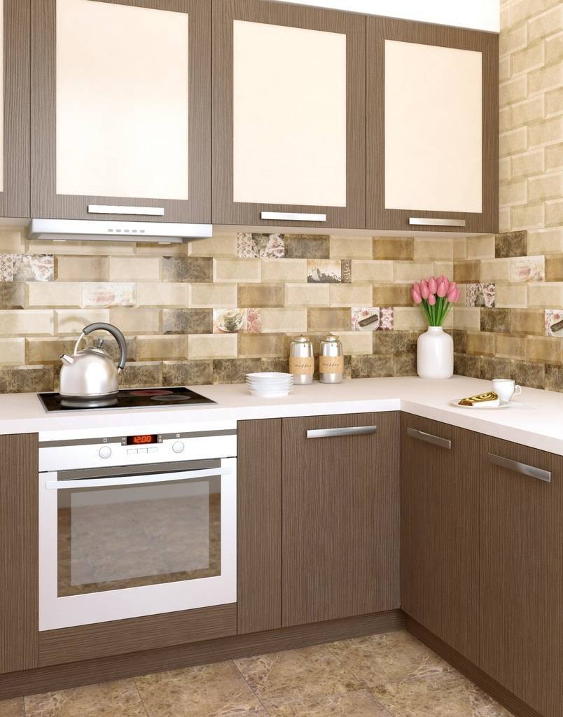 Учитывая то, что отделка фартука керамикой выполняется не на один год, а в среднем лет на 7–10, важно правильно подобрать её дизайн. Понятно, что оттенок стен может поменяться за эти годы не один раз, поэтому важно, чтобы оттенок отделки можно было сочетать с разными цветами