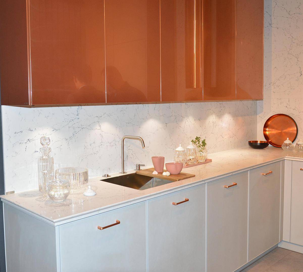 Керамическая плитка — это материал, который чаще всего выбирают для стен над кухонной стойкой. Неудивительно, так как она невоспламеняемая, легко моется и устойчива к воде и пару. Однако популярность плиток не означает, что стены, отделанные ими, должны выглядеть стандартно и скучно. Широкий ассортимент производителей керамической плитки предоставляет покупателю большой выбор и интересные решения. Чтобы добиться оригинального эффекта, вы можете выбрать плитки, имитирующие дерево, интенсивного цвета или необычного рисунка.