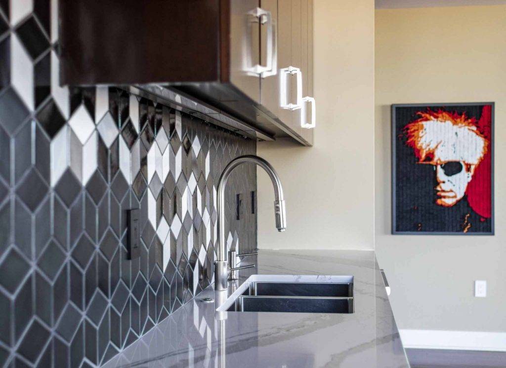 Важно отметить, что плитка белого, серого и черного цветов не только выглядит интересно, но она также универсальна. Таким образом, вы можете подобрать мебель практически любого цвета, получая интересный эффект