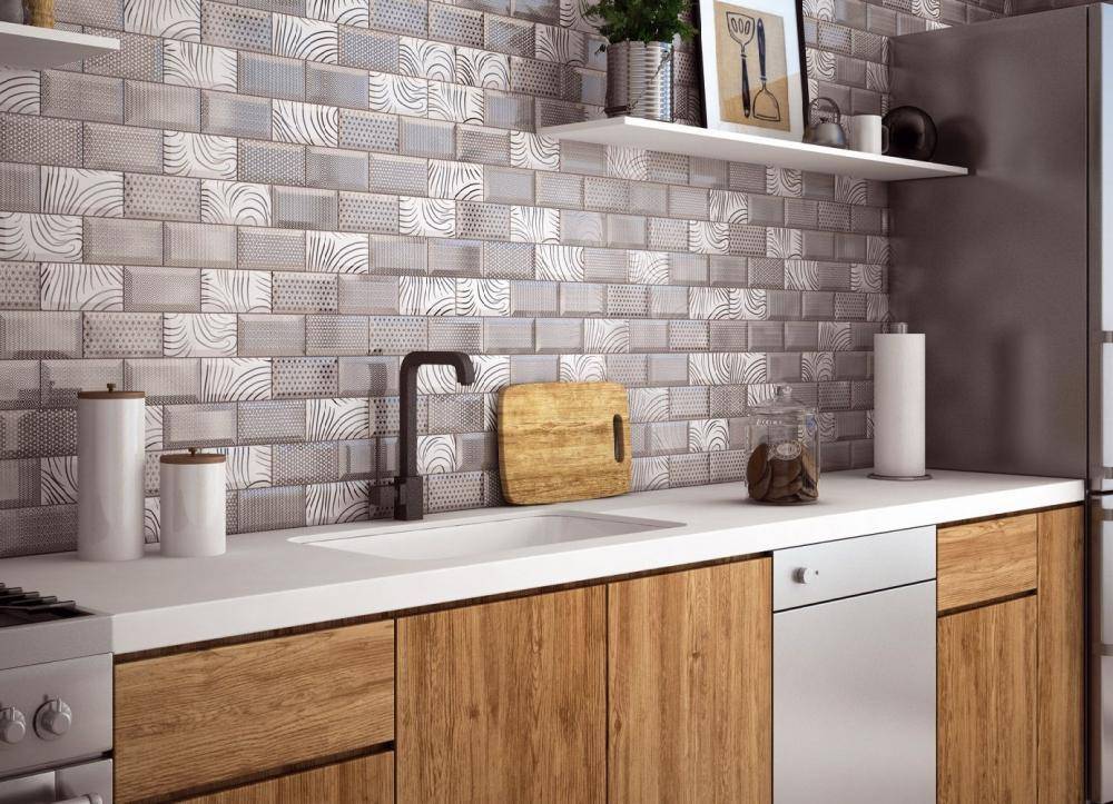 Модный дизайн кухонной плитки все чаще появляется не только на стенах, но и на полу. Тем не менее, узорчатая керамика является рискованным вариантом. Мода меняется слишком быстро. В настоящее время в дизайне керамической плитки преобладают геометрические мотивы, но также в 3D-варианте. Кухонная плитка с фактурой позволяет оживить стену, которая при правильном освещении будет очень эффективной. Интересно сочетать гладкие плитки с рельефным узором — четкие, глубоко вырезанные линии дополнительно выделяются ярким цветом, что дает эффект абстрактного рисунка. Кухонная плитка может иметь восточные мотивы, характеризуясь рисунками с нечеткими линиями.