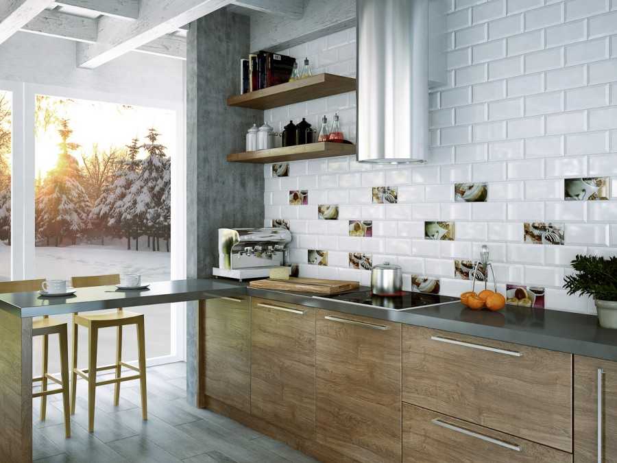 Этот вариант хорошо сочетается как с сельской, так и с современной комнатой. Металлические и имитирующие натуральный бетон варианты, а также отделанные в натуральных тонах идеально подойдут для минималистических и промышленных кухонь. Для этнических или деревенских интерьеров, выберите белые плитки в сочетании со стильными декором в естественных и теплых цветах. Плитка с броскими цветами, например, красным, будет стимулировать ваш аппетит и добавит немного остроты.