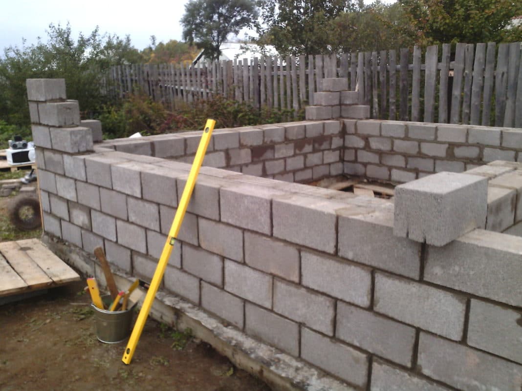 Кладка стены из керамзитобетона шириной в блок