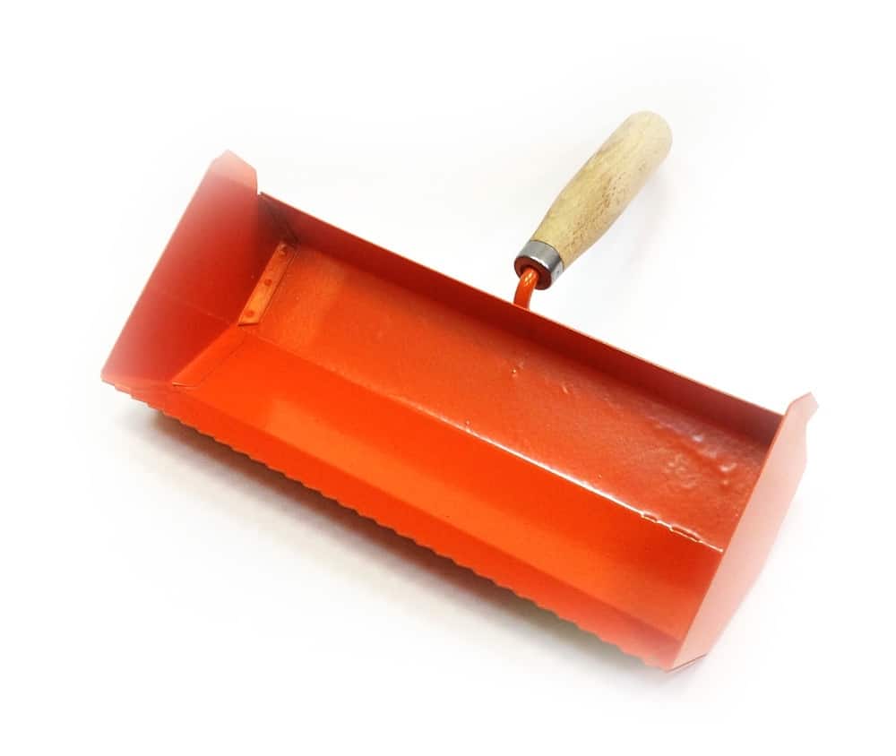 Удобное применение инструмента обеспечивают ручки с резиновым или пластиковым держателем. Поверхность ее моет быть гладкой или рифленой. Такая конструкция кельмы позволяет точно накладывать клей на горизонтальные или вертикальные поверхности, форма ковша позволяет расходовать клей только по назначению.