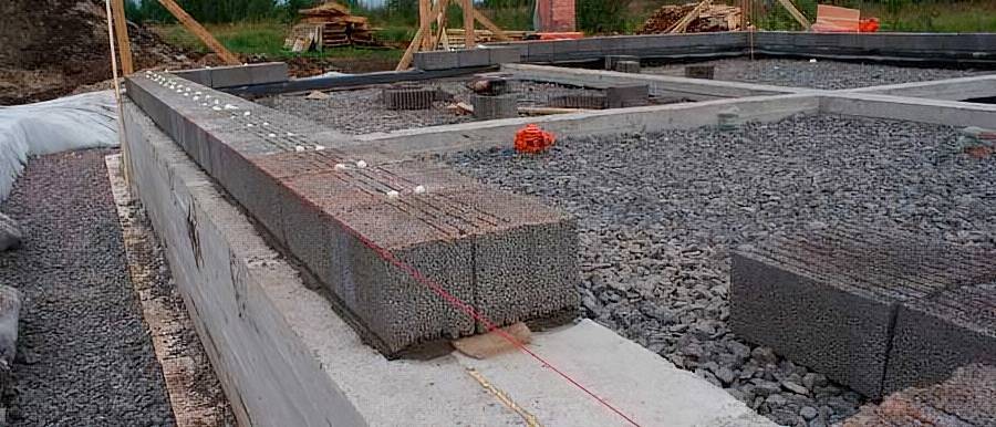 - Увеличение расходов на подготовку основания. Так как плотность керамзитобетона больше, чем у аналогичных ячеистых бетонных блоков, то фундамент необходимо делать более массивный, рассчитанный на большую нагрузку
