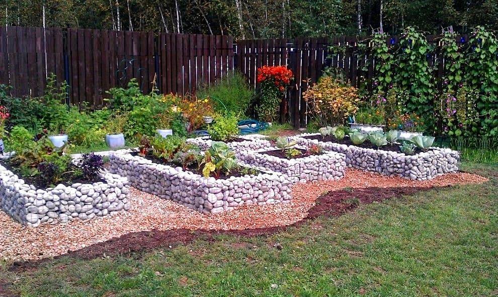 Клумбы из габионов — модное направление в ландшафтном дизайне. Возможно, такой вариант клумбы более уместен как часть опорной стенки в саду.