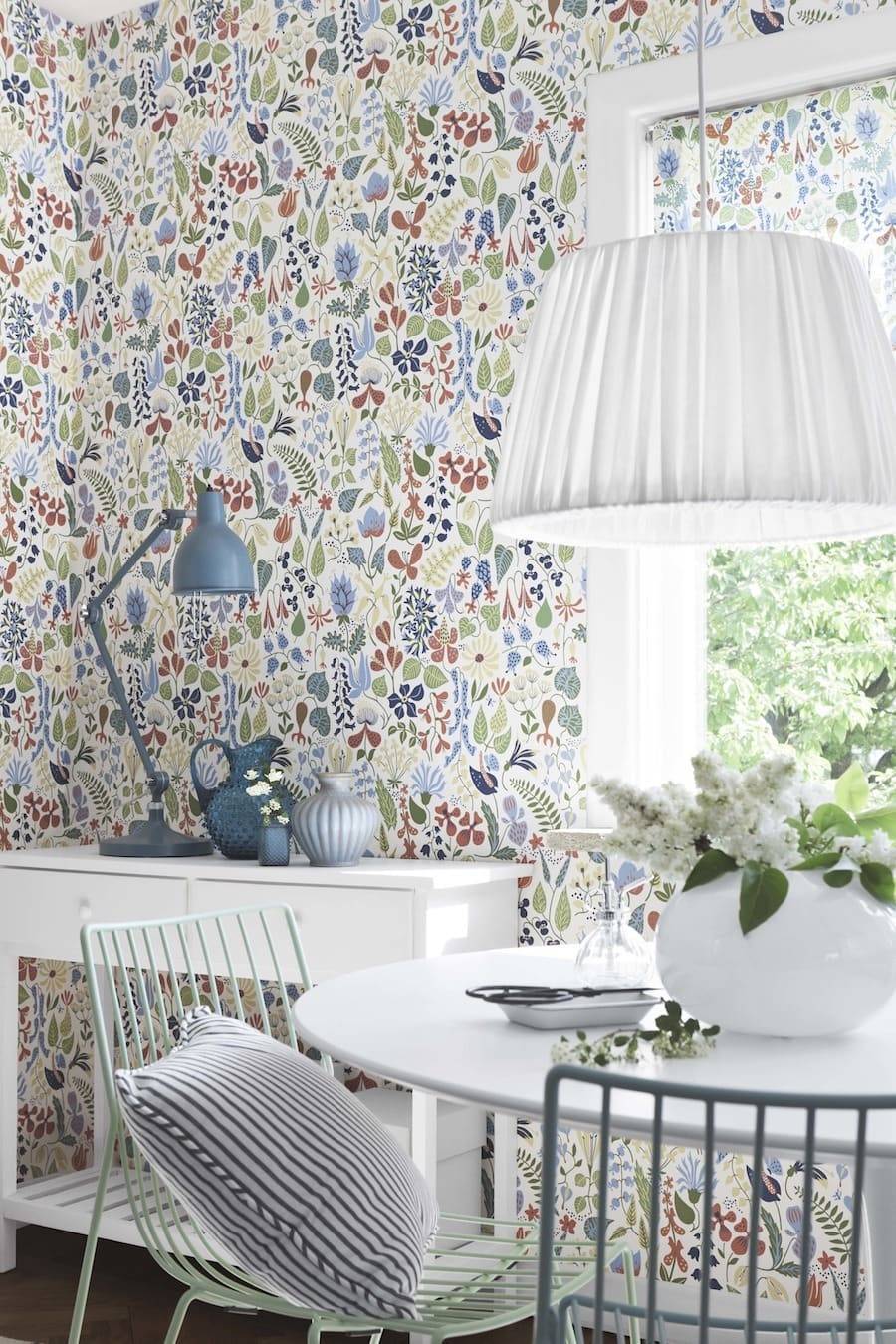 Цветочные мотивы на обоях с белым фоном всегда будут очень актуальны