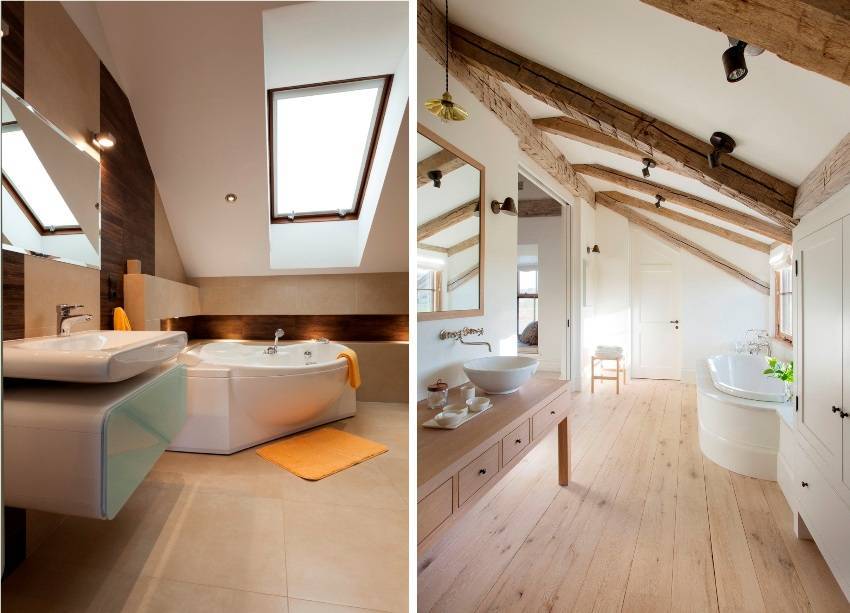 На мансарде можно обустроить стильную и функциональную ванную комнату