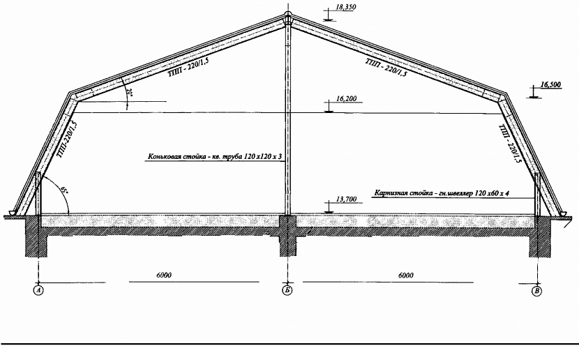 - стойки и подкосы используются для сооружения конструкции с многопролётностью, в этом случае необходимо ещё установить несколько опор на накосную ногу;