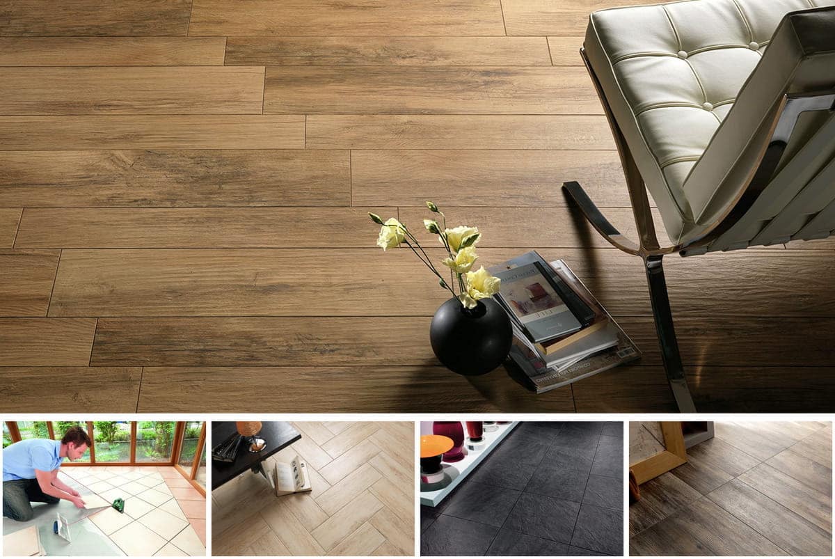 - Вытянутый прямоугольный керамогранит наподобие паркетной доски следует уложить перпендикулярно стене, имеющий оконный проем. В результате поток солнечных лучей будет падать вдоль швов.