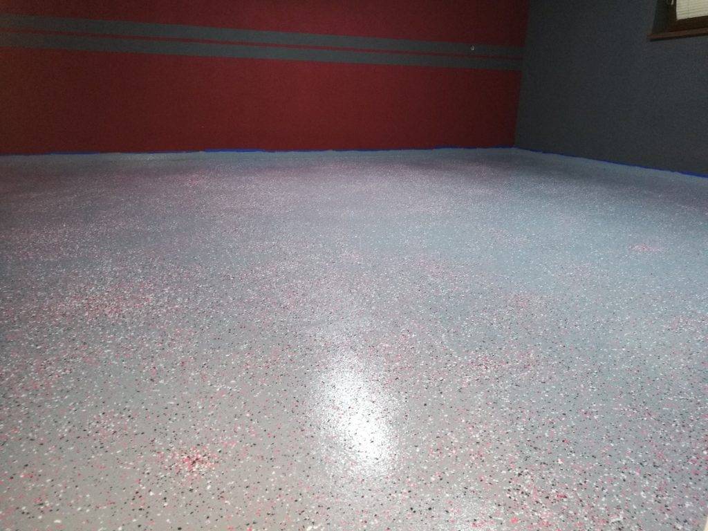 Как уже ранее говорилось, эпоксидная краска может наноситься сразу бетон, спустя 5 дней после его заливки. Предполагается, что по истечении данного времени по бетону можно передвигаться, так как он уже высох, а уровень влажности бетона оптимальный для нанесения эпоксидной краски. Поверхность бетона не должна иметь видимых дефектов, в противном случае такие места следует механически обработать. Далее пол нужно тщательно пропылесосить.