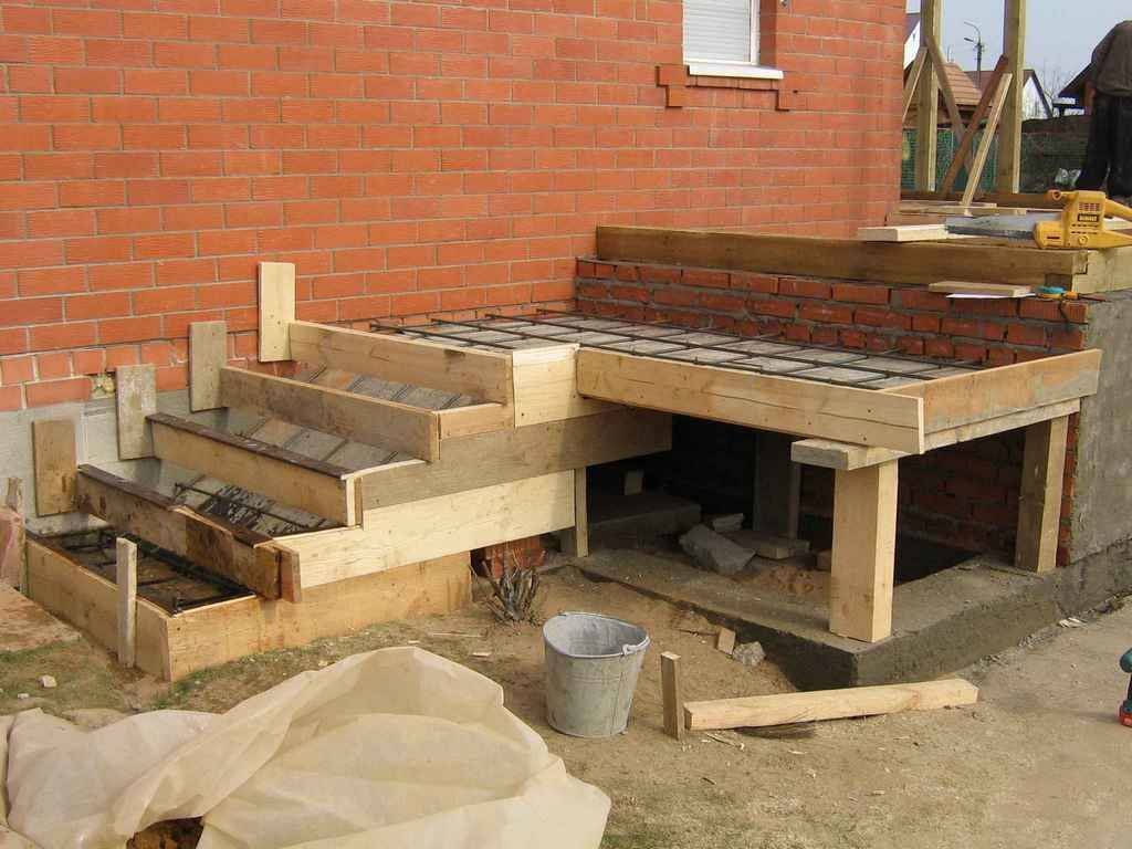 Надеемся мы дали более или менее развернутый ответ на вопрос о том, как залить крыльцо полукругом или прямоугольником. Как видите, основная сложность в изготовлении подобных конструкций состоит в сборке надежной опалубки требуемой формы и вязке арматуры.