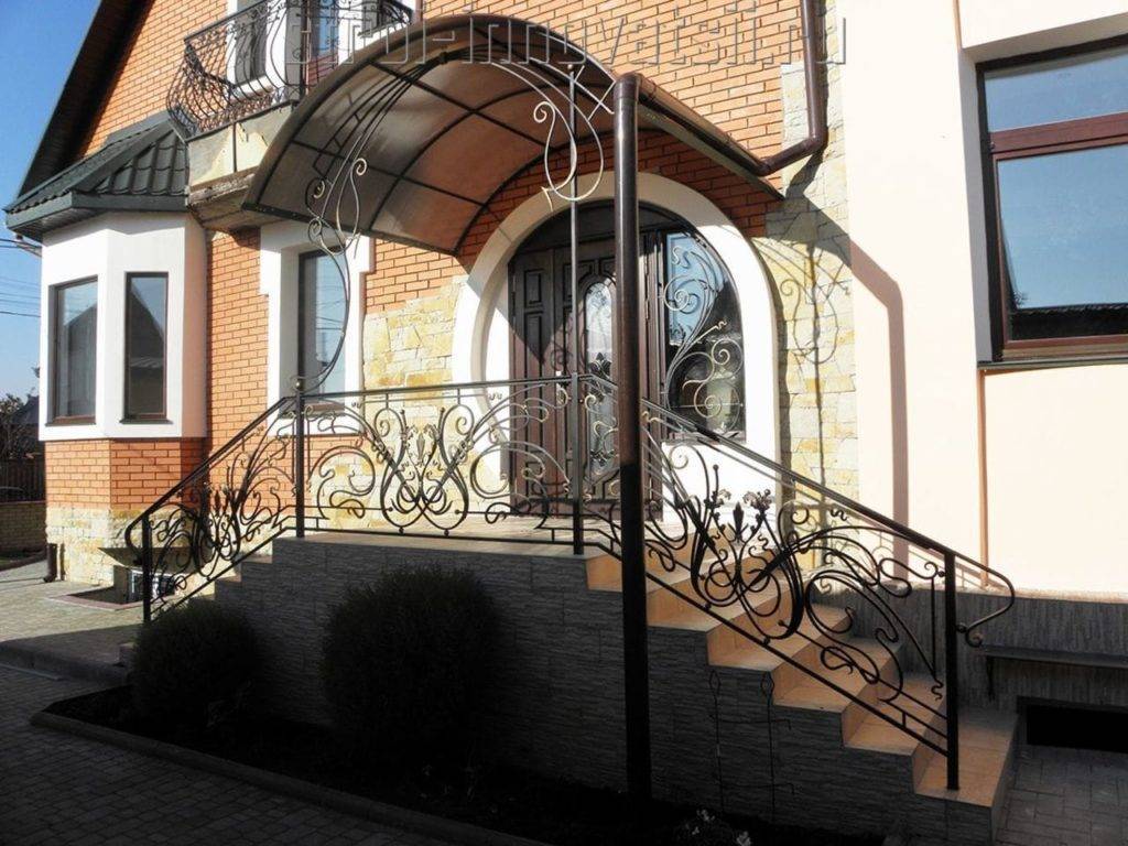 Если ступеней более 3-х, то нужно устанавливать перила высотой 80-90 см, чтобы вход в дома был нетравматичным. Фото перил показывают, насколько искусным может быть их исполнение.