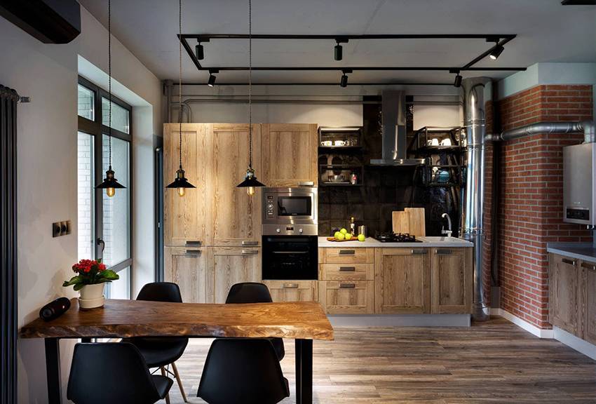 Одна кухня-лофт обычно сочетает в себе несколько видов светильников