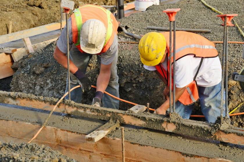 - 6.После приготовления или покупки бетонной смеси можно приступать к заливке. Как правило, заливку производят послойно. В каждом слое удаляются пузырьки воздуха при помощи глубинного вибратора. Так конструкция будет прочнее. При заливке бетона не стоит его лить с высоты более 1,5 м, чтобы не вызвать снижения прочности конструкции.