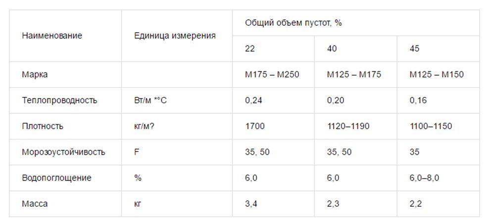 Важно учитывать, что чем больше пустот в изделии, тем ниже его прочность, но в то же время теплоизоляционные качества будут гораздо лучше. По форме отверстия бывают круглыми, квадратными, прямоугольными и овальными