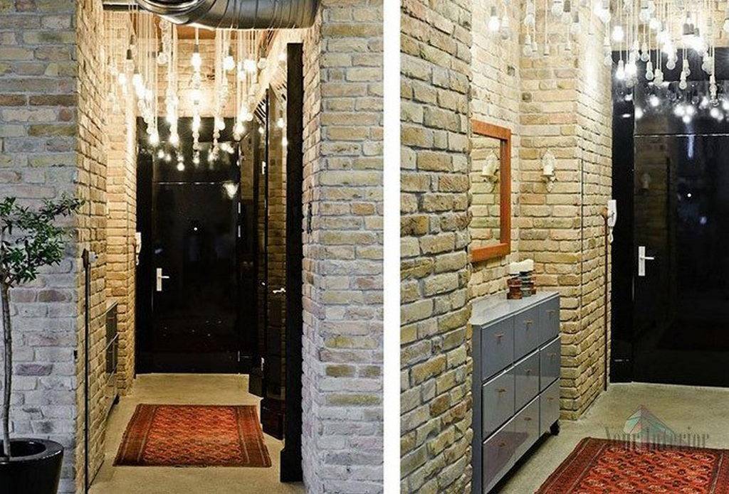 В лофте это помещение чаще всего пересекается с гостиной, поэтому при выборе отделки для прихожей нужно учитывать общий выбранный оформительский курс. Но кирпич всегда актуален. И даже необязательно красный.