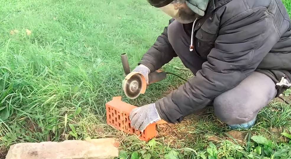 При необходимости кирпич разрезаем на куски нужного размера с помощью болгарки.