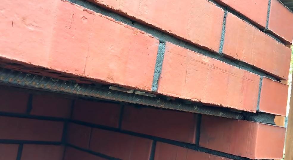 Мы используем стальные уголки и арматуру, чтобы на нее упирался облицовочный кирпич.