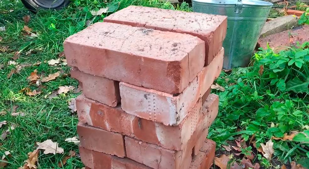 Для начала закупили дешевый кирпич по 10р за 1 шт. Он пустотелый, но красивый – именно то, что нужно для возведения каркаса.