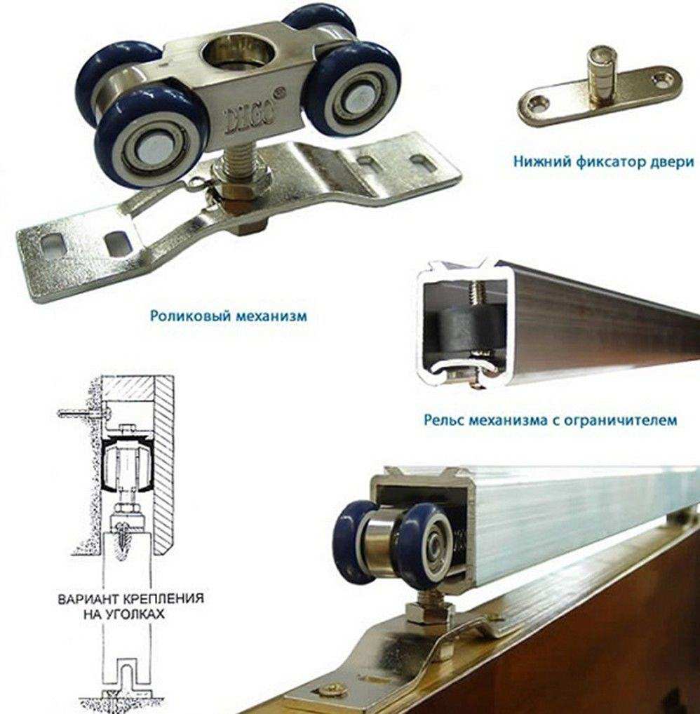 Для раздвижных дверей кассетного типа потребуются следующие комплектующие и фурнитура: