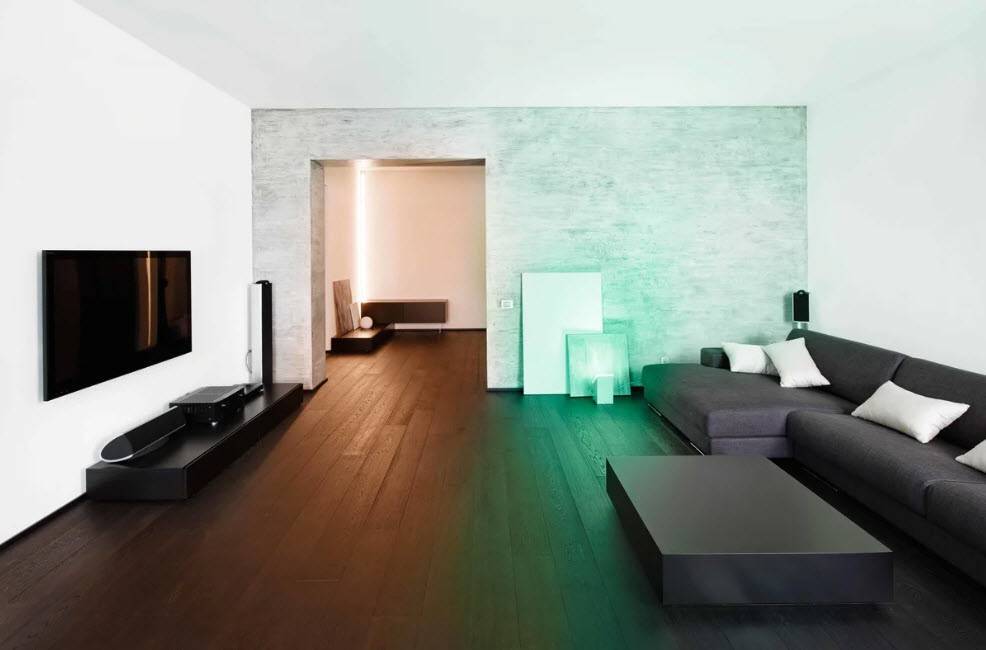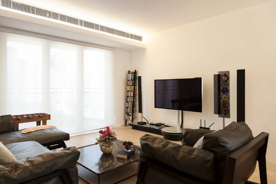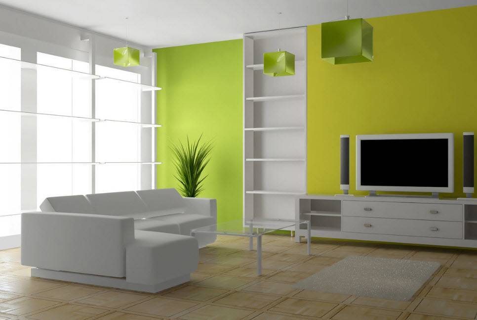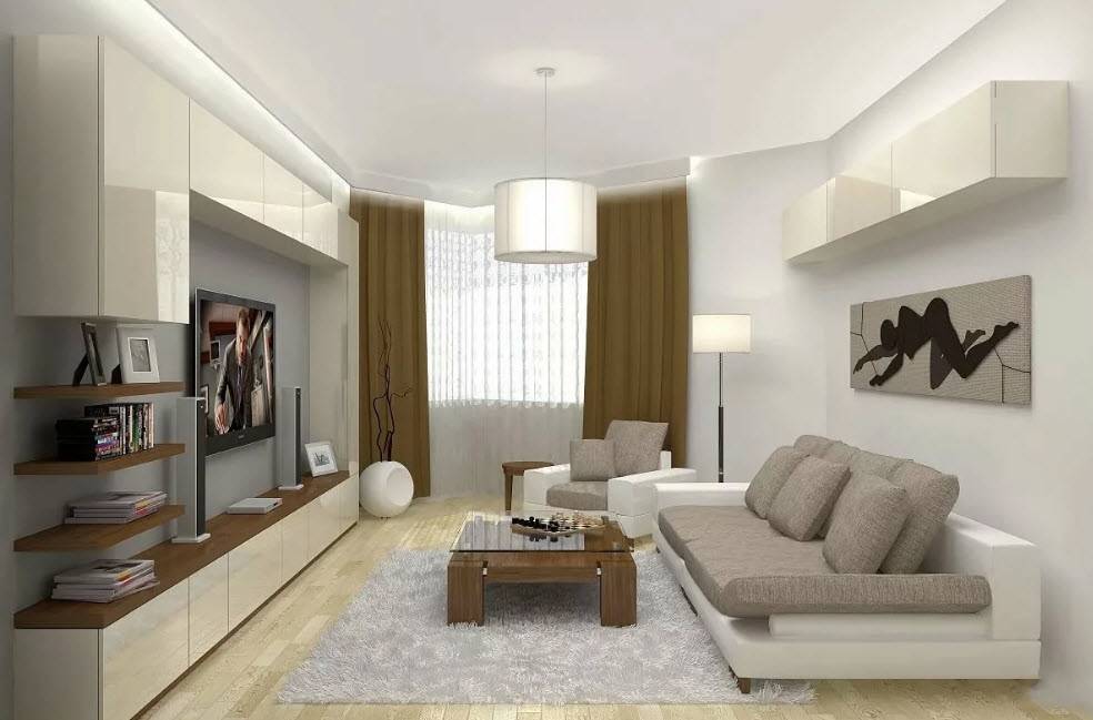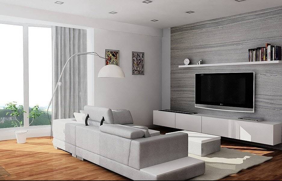 При правильном оформлении зала, используя дизайн концепции минимализм, получится создать сдержанное, но роскошное помещение. Классические цвета декора – белоснежный, черный, светло-коричневый, серый. Разрешается добавлять смелые оттенки (зеленый, красный или оранжевый).