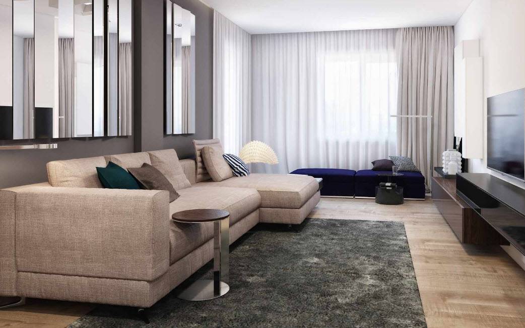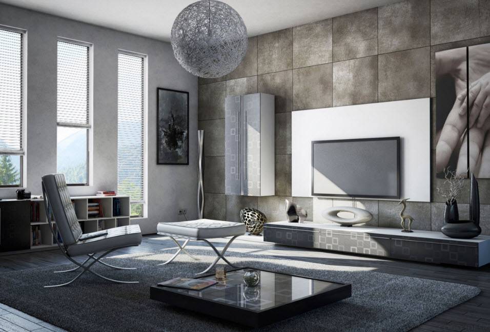 ФОТО: mir-s3-cdn-cf.behance.netПри использовании серо-белых оттенков вы можете выбрать глянцевые поверхности мебели и фактурные ковры