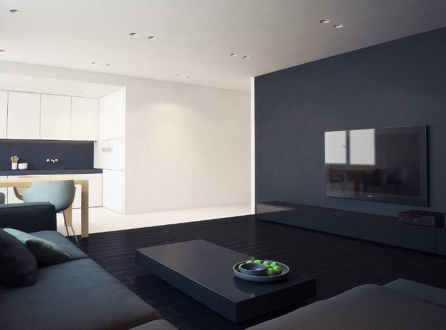 Интерьер комнаты, выполненной в стиле минимализм, предполагает гармоничную отделку в сочетании с минимальным количеством предметов декора и мебели. Гостиная в стиле минимализм – проста и гениальна одновременно. Главную роль в дизайне зала, играют формы и фактуры, помещение наполнено простотой и максимальной функциональностью.