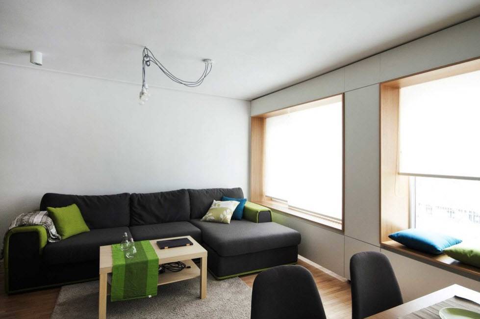Можно освободить больше пространства в помещении, если убрать перегородки и сменить межкомнатные двери на арки. Чаще всего в минималистическом дизайне присутствуют такие цвета: белый, серый, серебристый, черный и бежевый. Дополнить данные оттенки можно другими яркими красками: зеленым, желтым, красным.