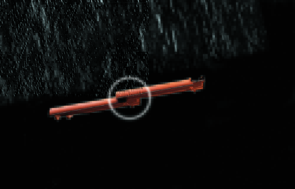 Один из видов испытаний на водопроницаемость. При испытании данных моделей смонтированный черепичный скат с уклоном в 10º поливают водой и сильным воздушным потоком, направленным со стороны карнизного свеса задувают влагу под нахлесты черепицы. Испытания показывают, что данные модели сохраняют герметичность при минимальных уклонах в 10º.