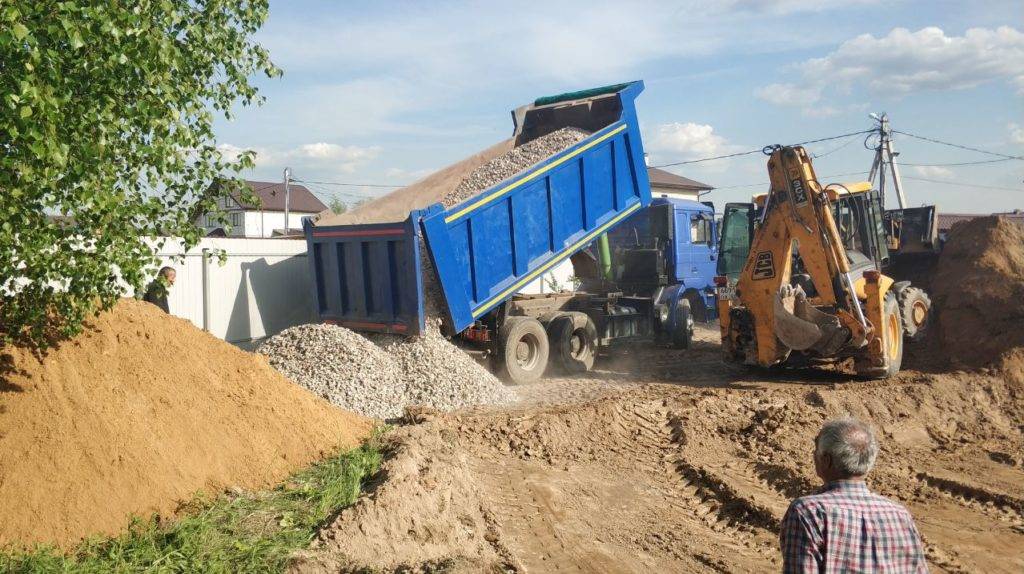 - Делается фильтрующая подушка. Для этого засыпается и утрамбовывается гравий, аналогичная процедура производится с речным песком;