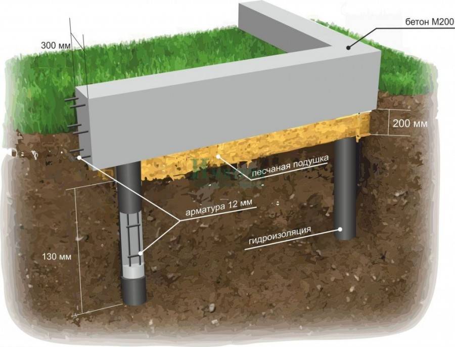 - Висячий ростверк устанавливается выше уровня грунта, расстояние может быть разным. Этот вариант более распространен для металлических и деревянных конструкций, чтобы они как можно дольше сохраняли свойства жесткости, а также при определенных особенностях грунта. Его делают из железобетонных столбов, чтобы жесткость была максимальной за счет арматуры.