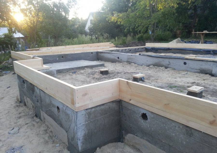 Самой важной частью является днище опалубки, так как оно должно выдержать массу бетона. Для этого необходимо устроить упоры