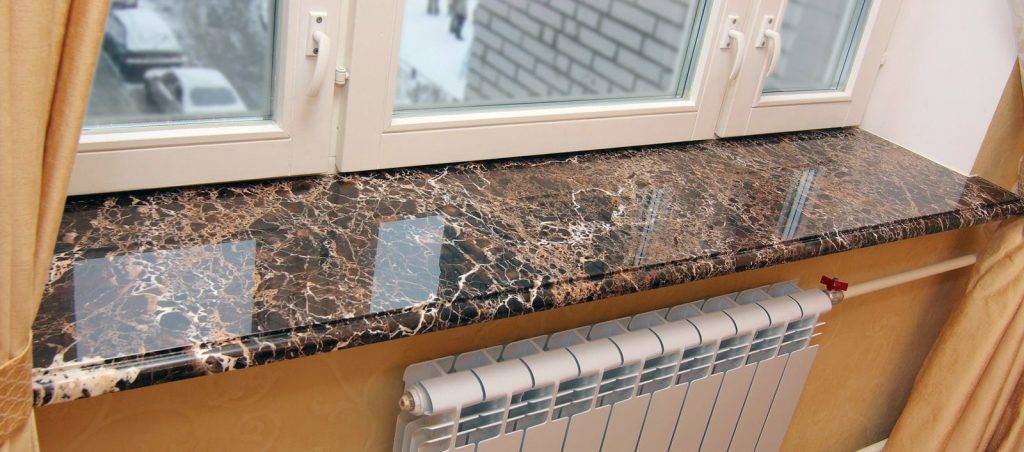 - гранитная поверхность лучше, чем подоконник из плитки, так как выдерживает высокую температуру;