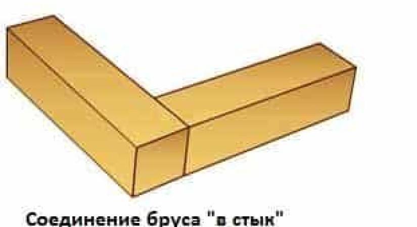 Брус укладывают на поверхность фундамента, временно закрепляют и проверяют прямоугольность углов нивелиром. Соединяют брус друг с другом или методом «встык» или «в полдерева». В первом варианте торец одного элемента просто плотно прижимают к краю второго и производят крепление металлическими пластинами. Во втором – на концах бруса пропиливают прямоугольную выборку на половину ширины доски. Крепление при этом выполняется на анкер и дополнительно на гвозди.