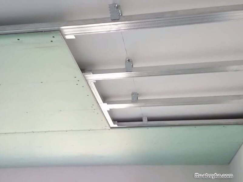 - далее происходит установка профилей на потолок. Их следует предварительно подогнать под размеры помещения;