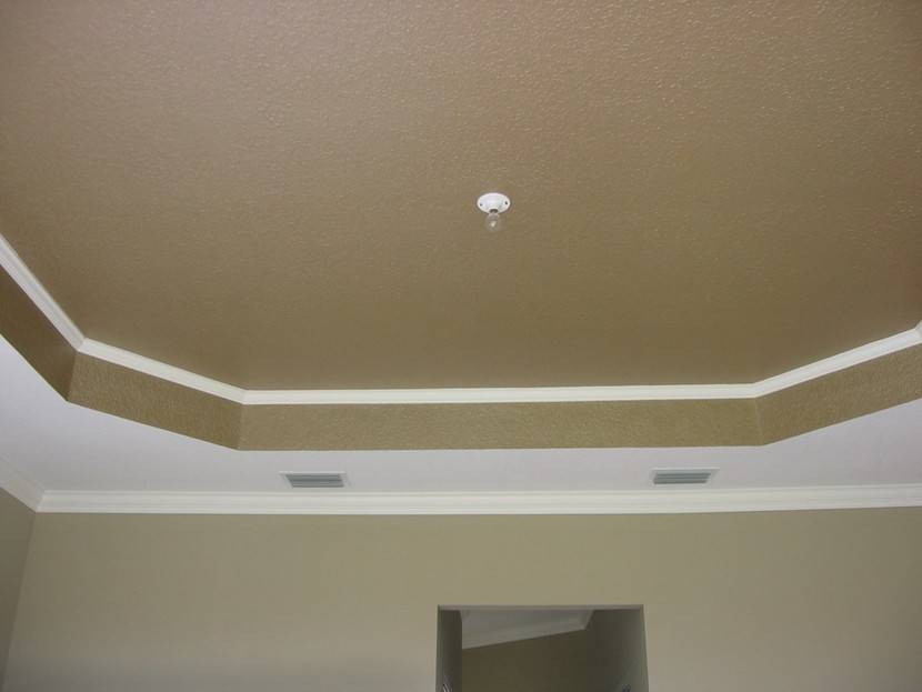 После того как выполнена подготовка потолка под покраску, приступают к процессу окрашивания. Последовательность работы такая: