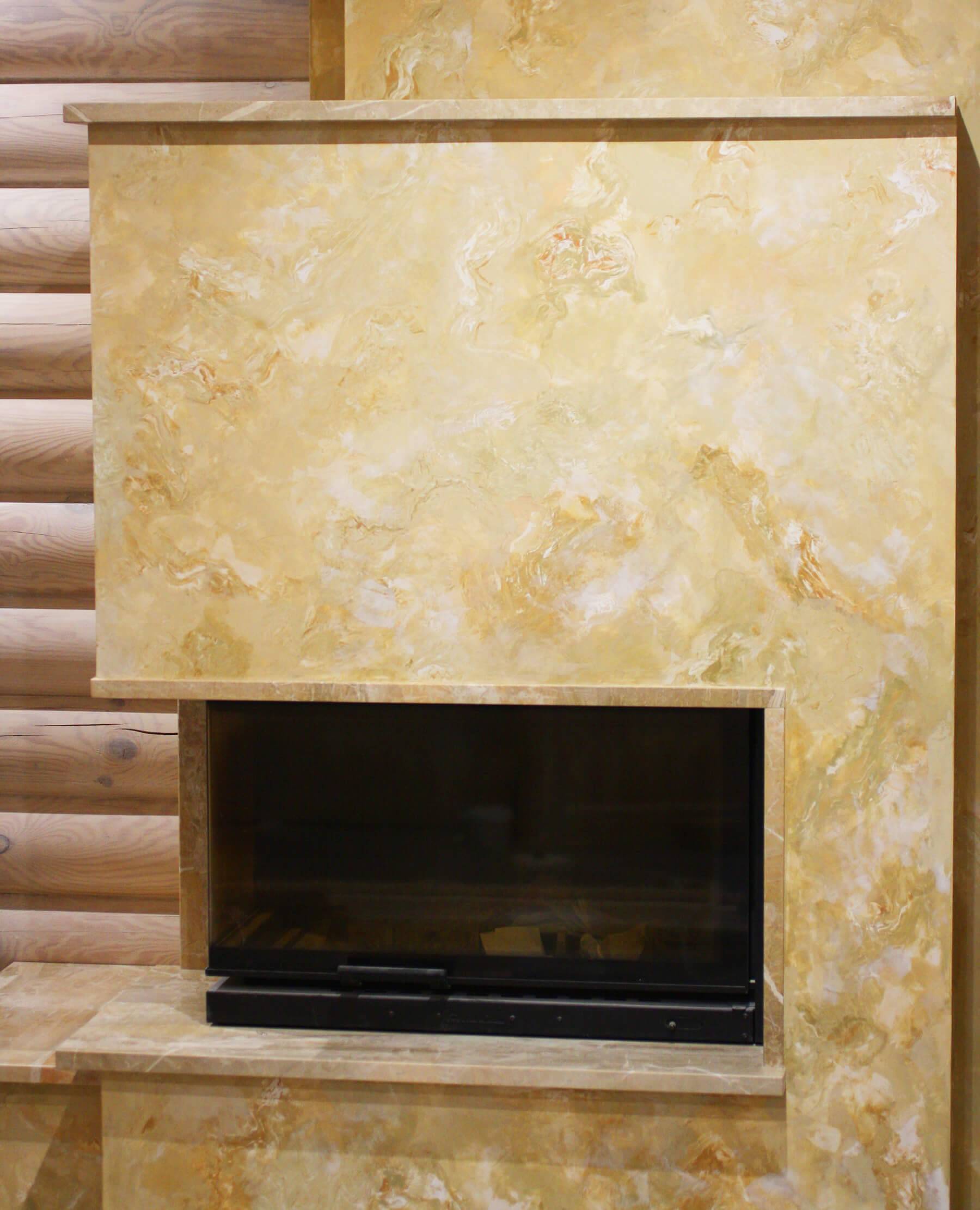 Применение декоративной штукатурки в отделке камина.