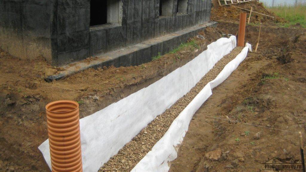 Для мест, где повышенная влажность, даже многослойная гидроизоляция не убережет от постепенного проникновения влаги в дом. Обычно такое происходит в заболоченных местностях и там, где регулярно выпадают осадки. Чтобы отвести лишнюю вагу следует соорудить дренажную систему. Это система из труб, которая строиться таким образом, чтобы отвести лишнюю влагу от участка с домом и тем самым обезопасить жилище от разрушения.