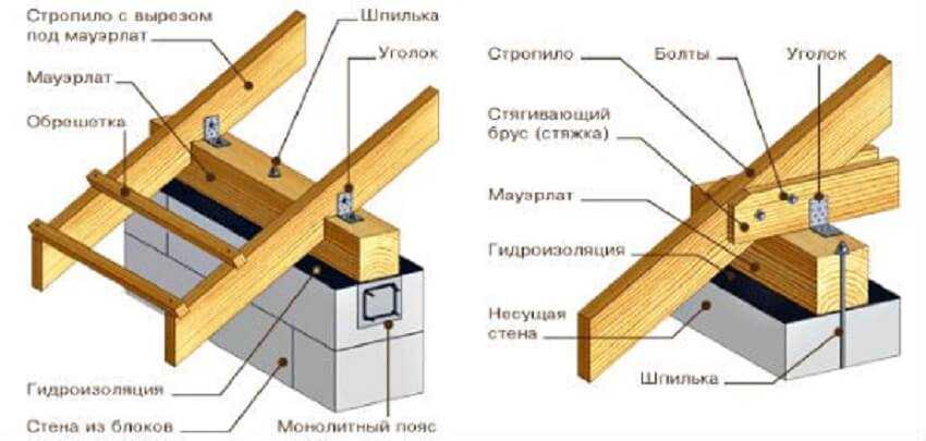 Мауэрлат – крепкий брус, который является основанием крыши. С помощью него нагрузка распределяется равномерно.