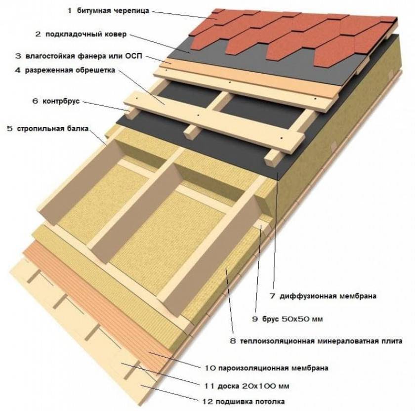 Крыши с холодным чердаком имеют следующие основные составляющие в своем пироге :