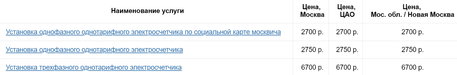 Ценовой диапазон электросчетчиков для трехзонной тарификации — от 2 до 6 тысяч рублей (Энергомера, Меркурий). Стоимость установки многотарифных электросчетчиков Мосэнергосбыт, включая цену прибора, отражена ниже.