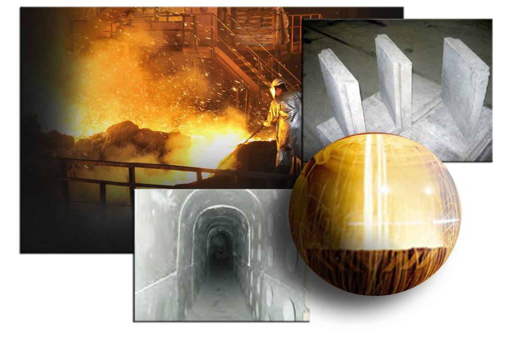 Используется также при возведении промышленного оборудования, работающего в высокотемпературном диапазоне – для монолитной футеровки котлов ТЭЦ, доменных, мартеновских печей, агрегатов обжига минеральных материалов; для облицовки ковшей транспортировки, розлива чугуна, стали, других расплавленных металлов.