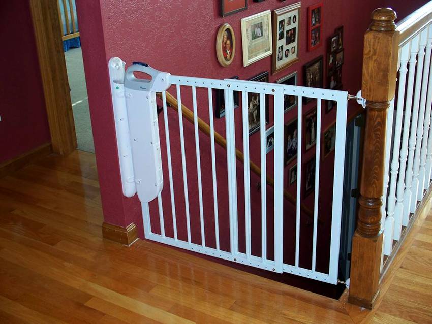 Конструкция ворот для лестницы может отличаться в зависимости от материала изготовления